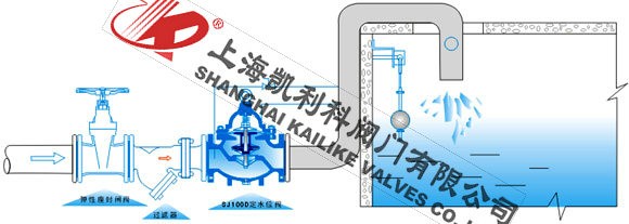 100D定水位閥是一種隔膜式調節水箱和水塔液面高度的閥門。閥門由浮球控制,當液面達到設定高度時閥門通過相關結構將信號傳遞給水泵,水泵停止供水;當液面低于社定位置時水泵自動啟動供水。